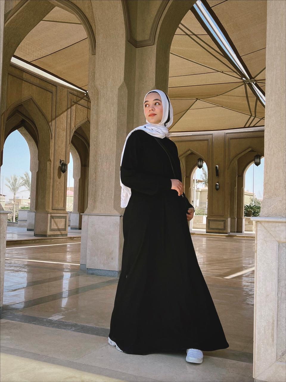 عبايتنا الأساسية، قطعة متعددة الاستخدامات، مصممة لإطلالة أنيقة دون عناء. تتميز هذه القطعة الأساسية بتصميم أنيق، يمكنكِ ارتداؤها بمفردها أو مع ستراتكِ/قفطاناتكِ/معاطفكِ المفضلة لخيارات تنسيق لا حصر لها.