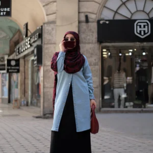 بطول يصل إلى ما قبل الركبة، بتصميم أنيق وقصّة طويلة عصرية