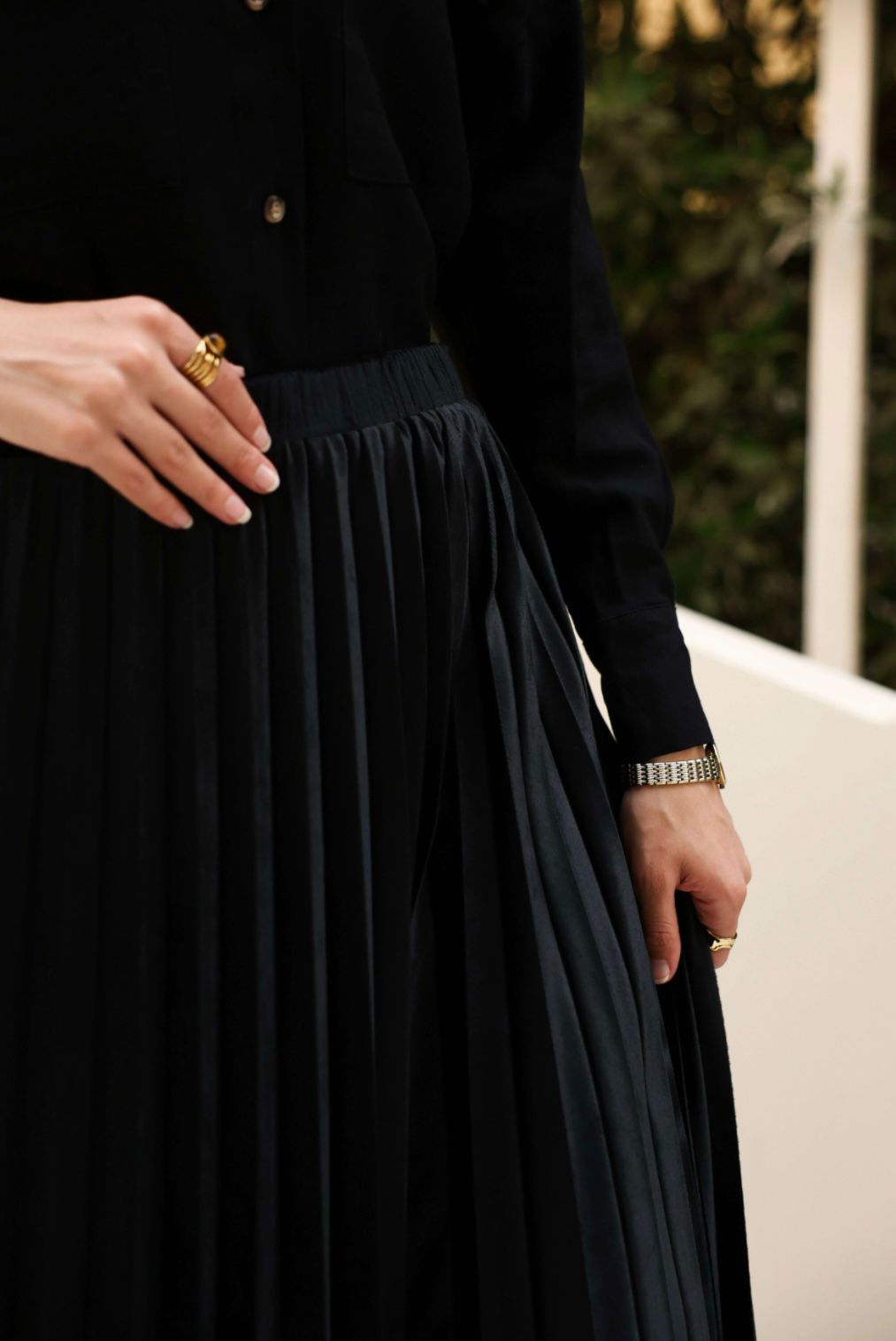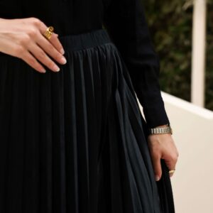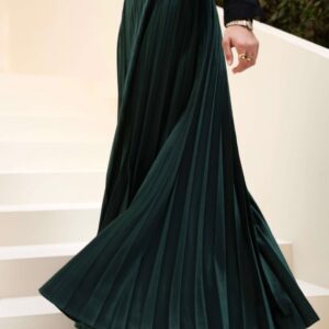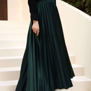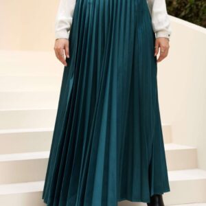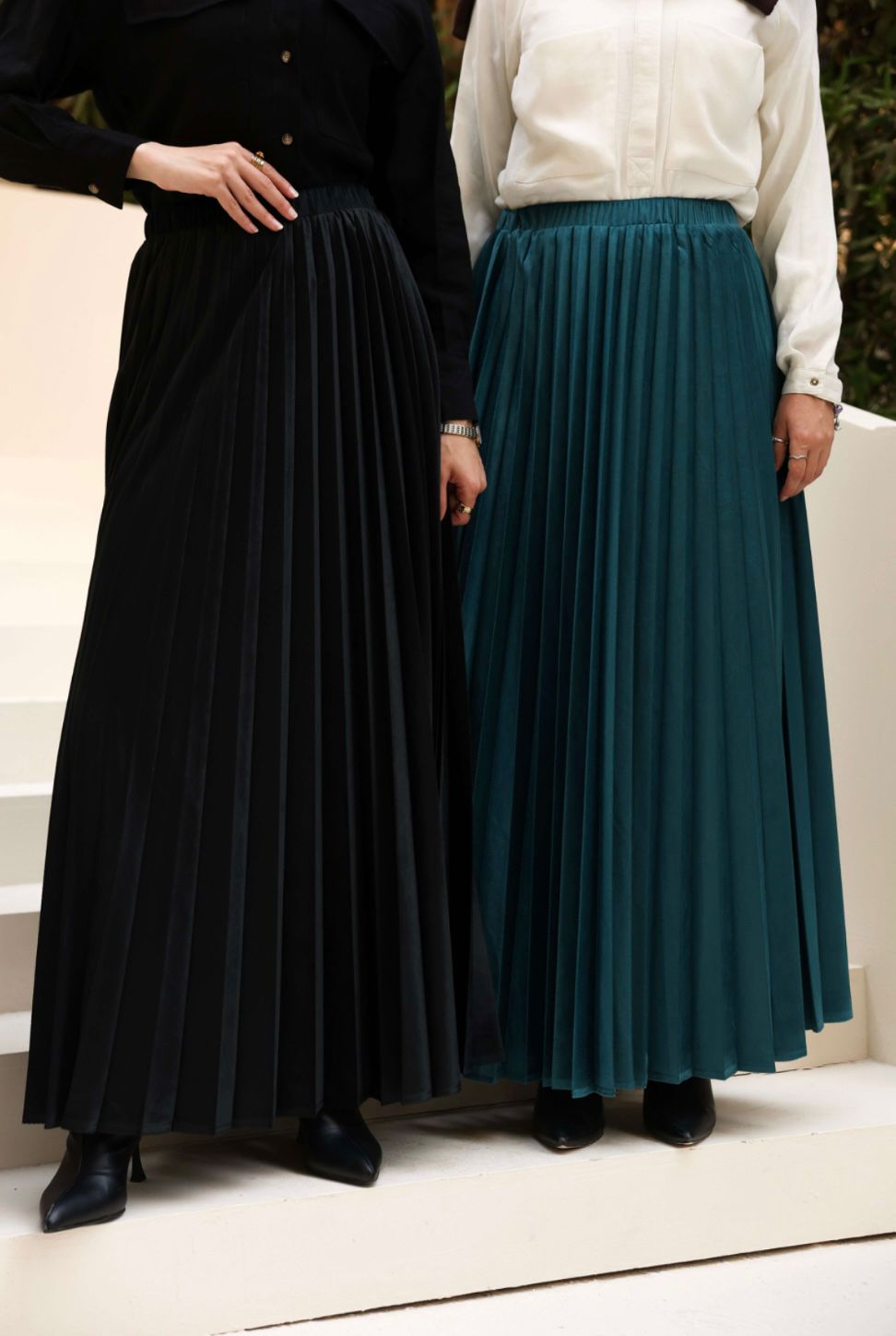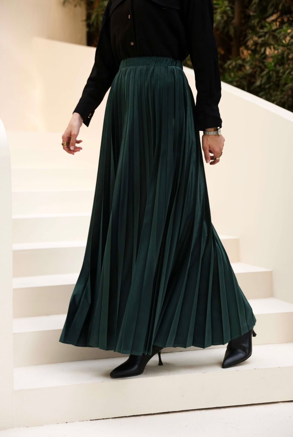 تنورة انيقة ذات تنيات من قماش قطيفة ناعم،
