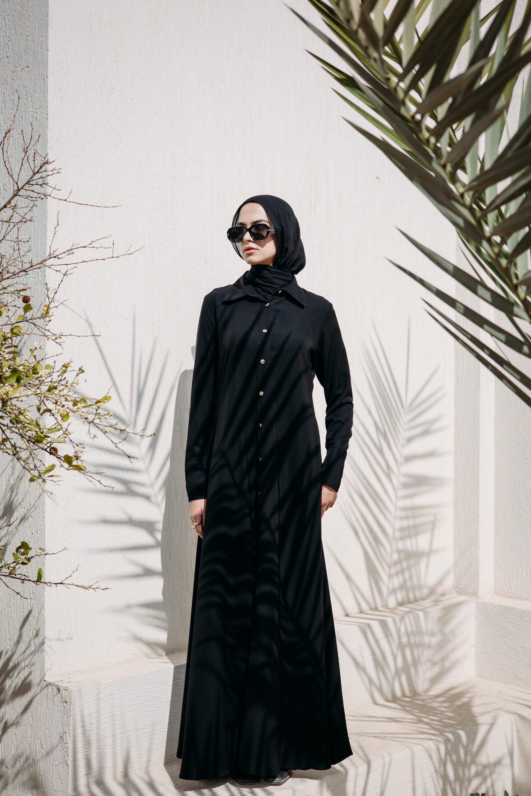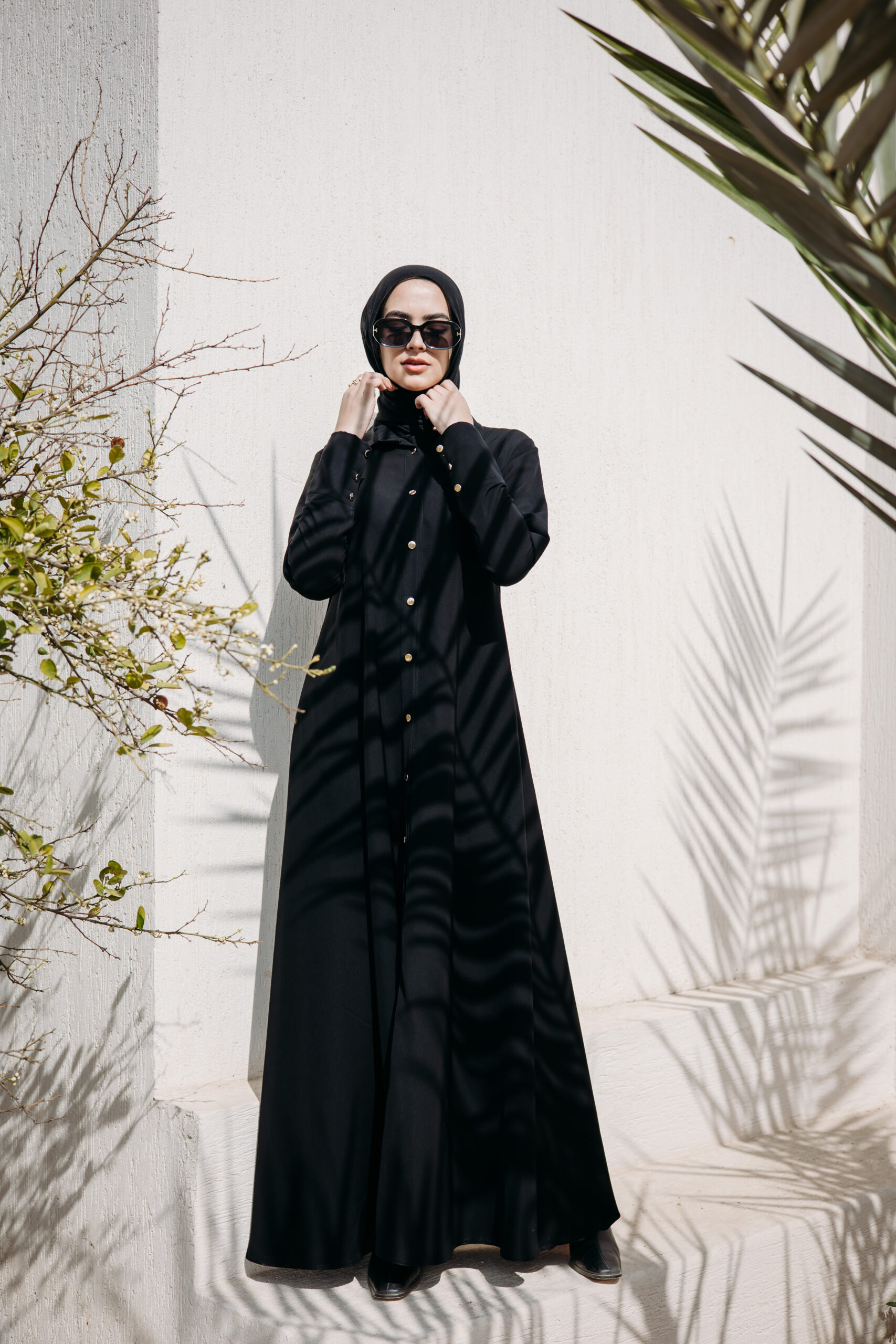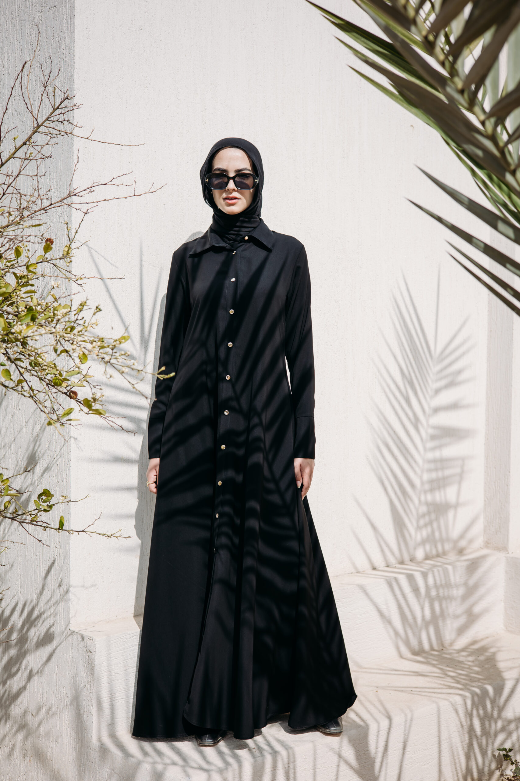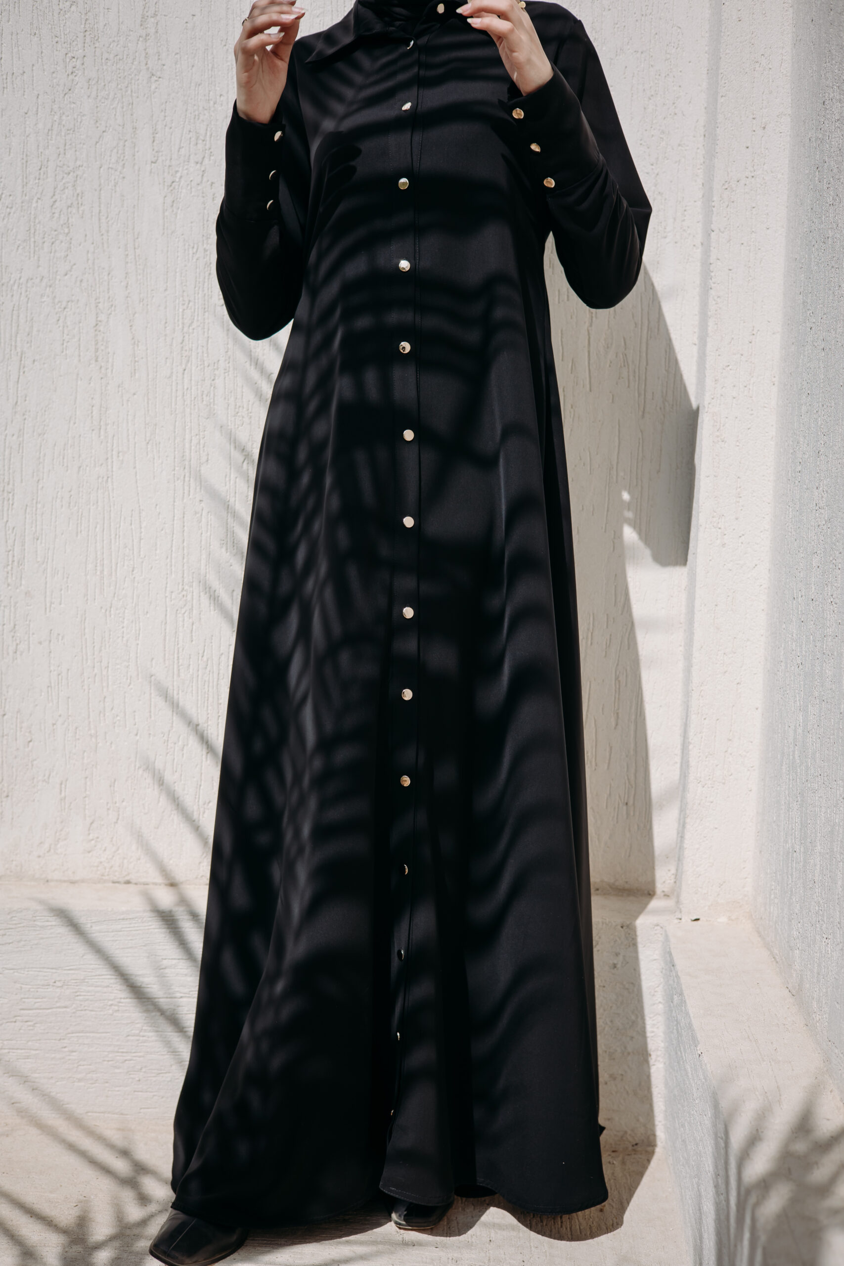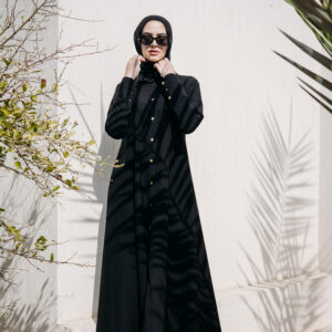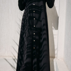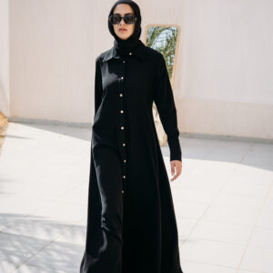 صُممت هذه العباءة بعناية فائقة، تتميز بأزرار ذهبية رائعة تُضفي لمسة من الفخامة على تصميمها الأنيق. تتدلى قصة الكلوش برشاقة، لتُضفي إطلالة أنيقة وجذابة. مناسبة للأمهات في الرضاعة لسهولة استخرام الأزرار