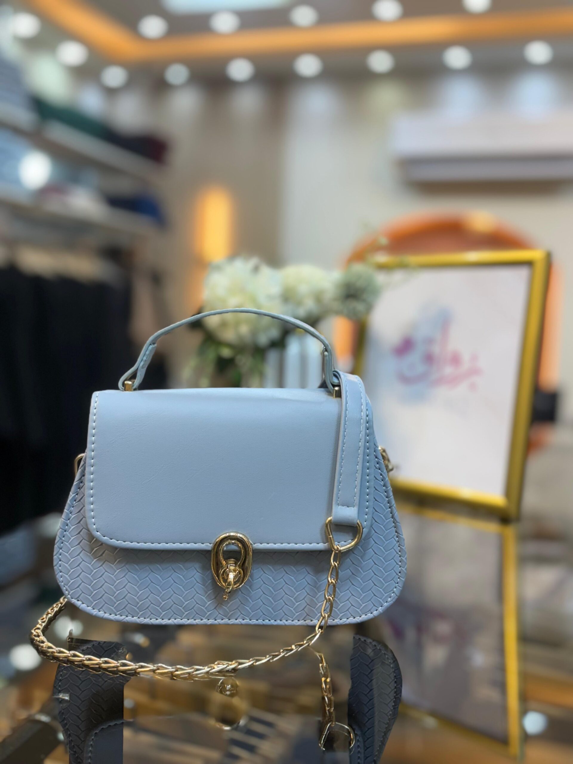 تتميز بقفل معدني ذهبي أنيق وحزام مزدوج (جلد + سلسلة) يمنحك حرية التنسيق حسب الإطلالة.