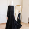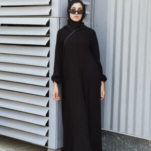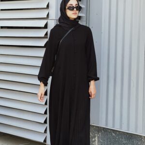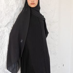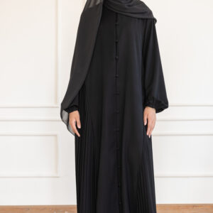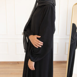 تألقي بأناقة بعباءة مصنوعة من الكريب الراقي مع جانبيين من البليسيه الحرير الناعم غير المنتظم ليعطي منظرًا مختلف من الشياكة والأناقة.