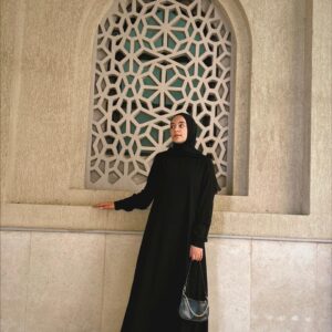 تألقي بأناقة بعباءة مصنوعة من الكريب الراقي مع جانبيين من البليسيه الحرير الناعم غير المنتظم ليعطي منظرًا مختلف من الشياكة والأناقة.