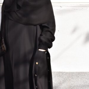 بتصميم كلوش واسع وصفّين من الكباسين السيلفر على الجانبين،