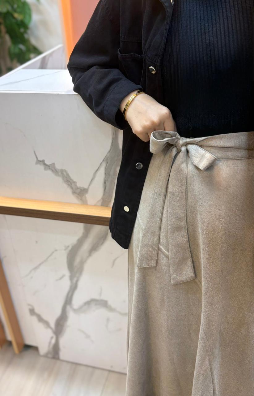 تأتي بقصة الكلوش مع رباط جانبي يضيف لمسة أنثوية أنيقة