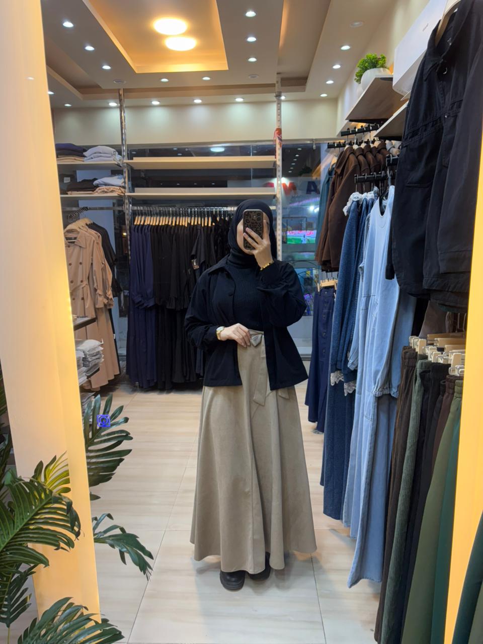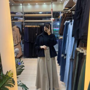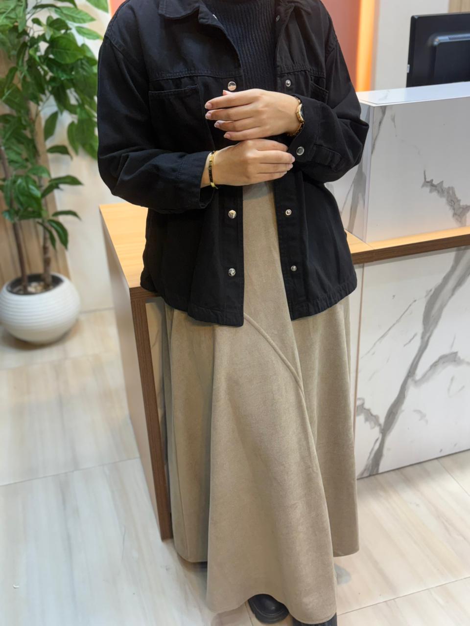 جيبة طويلة بتصميم ناعم يجمع بين العملية والأناقة، مصنوعة من خامة الشمواه تمنحك حرية حركة ومظهرًا راقيًا.